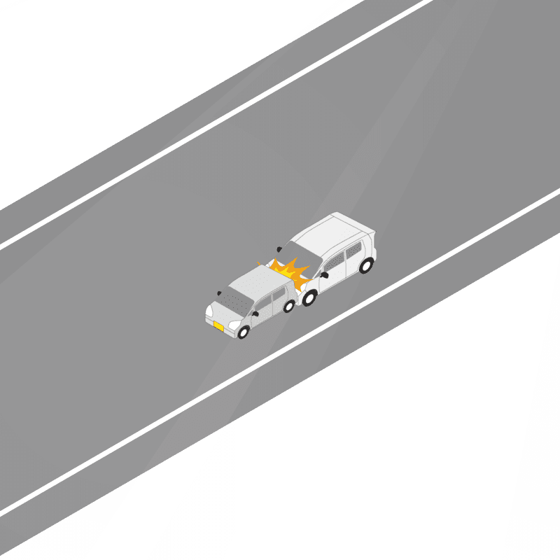 ・イラストに使用している各要素(車、背景、車、天候、信号、衝突地点など)は、代表的なイメージをイラスト化しており、色や形状等含め現実の事故の状況とは異なります。あくまで、事故のイメージとして参考までにご活用ください。