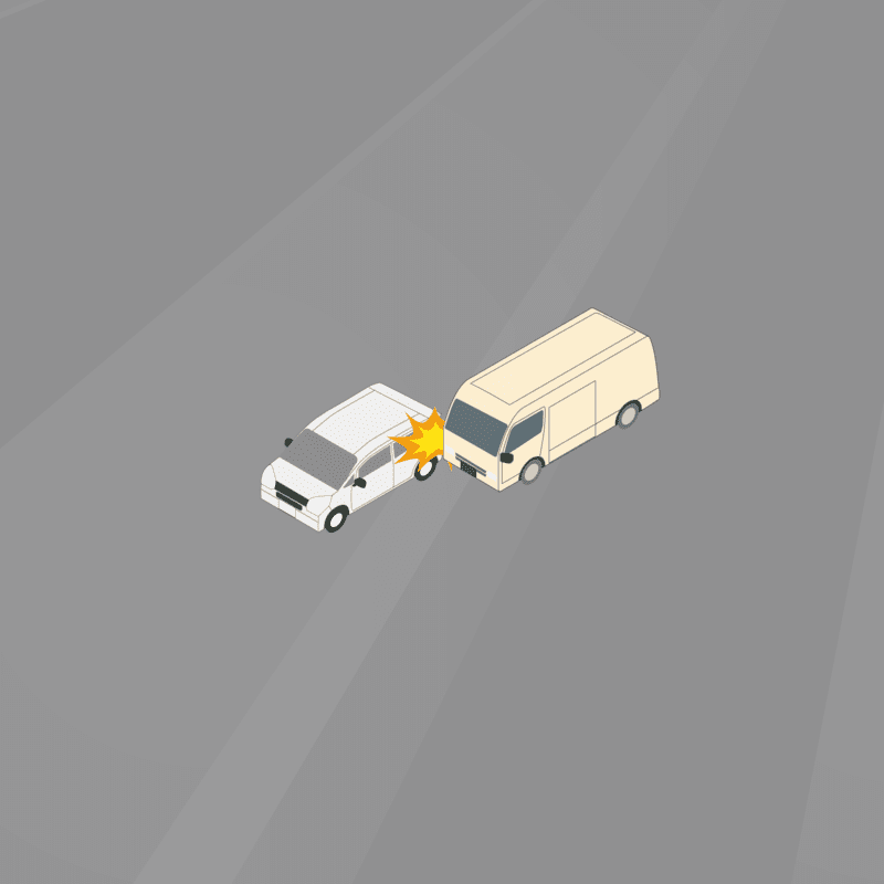 ・イラストに使用している各要素(車、背景、車、天候、信号、衝突地点など)は、代表的なイメージをイラスト化しており、色や形状等含め現実の事故の状況とは異なります。あくまで、事故のイメージとして参考までにご活用ください。