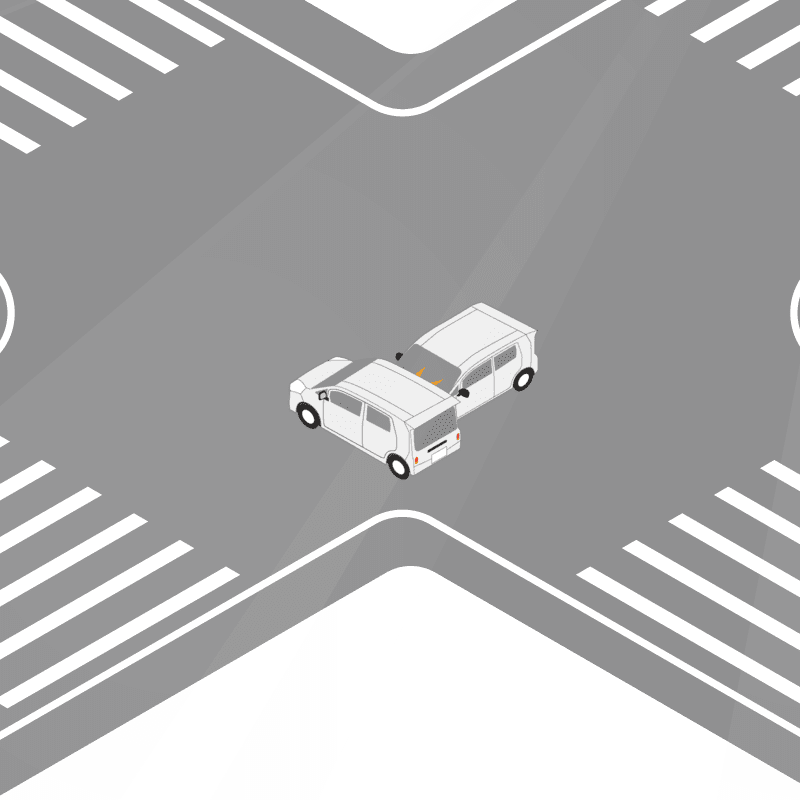 ・イラストに使用している各要素(車、背景、車、天候、信号、衝突地点など)は、代表的なイメージをイラスト化しており、色や形状等含め現実の事故の状況とは異なります。あくまで、事故のイメージとして参考までにご活用ください。