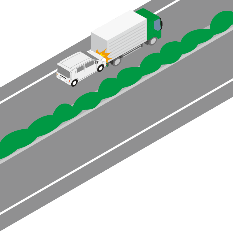 ・イラストに使用している各要素(車、背景、車、天候、信号、衝突地点など)は、代表的なイメージをイラスト化しており、色や形状等含め現実の事故の状況とは異なります。あくまで、事故のイメージとして参考までにご活用ください。
