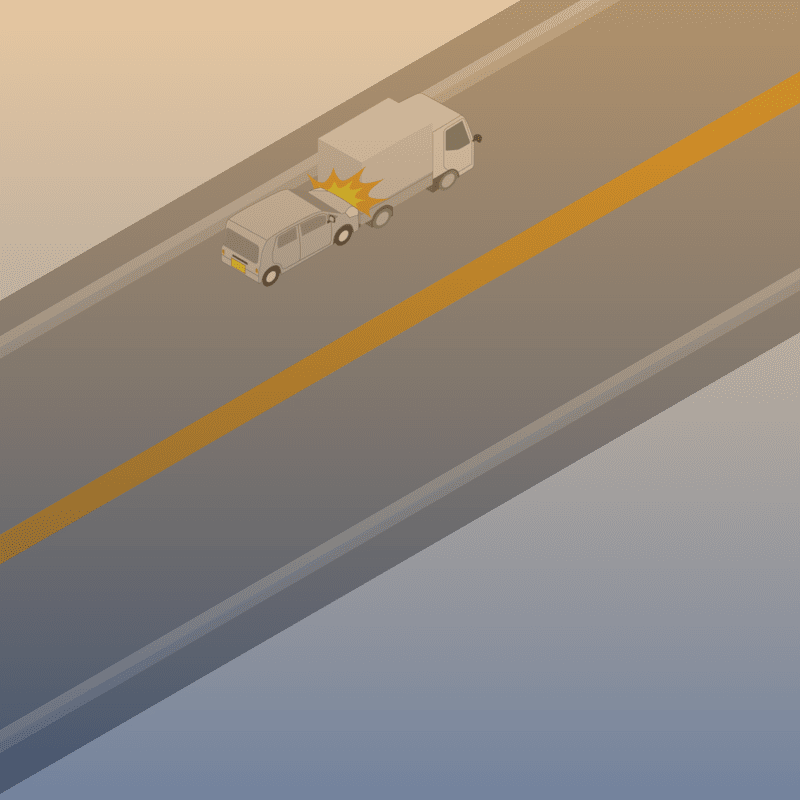 ・イラストに使用している各要素(車、背景、車、天候、信号、衝突地点など)は、代表的なイメージをイラスト化しており、色や形状等含め現実の事故の状況とは異なります。あくまで、事故のイメージとして参考までにご活用ください。