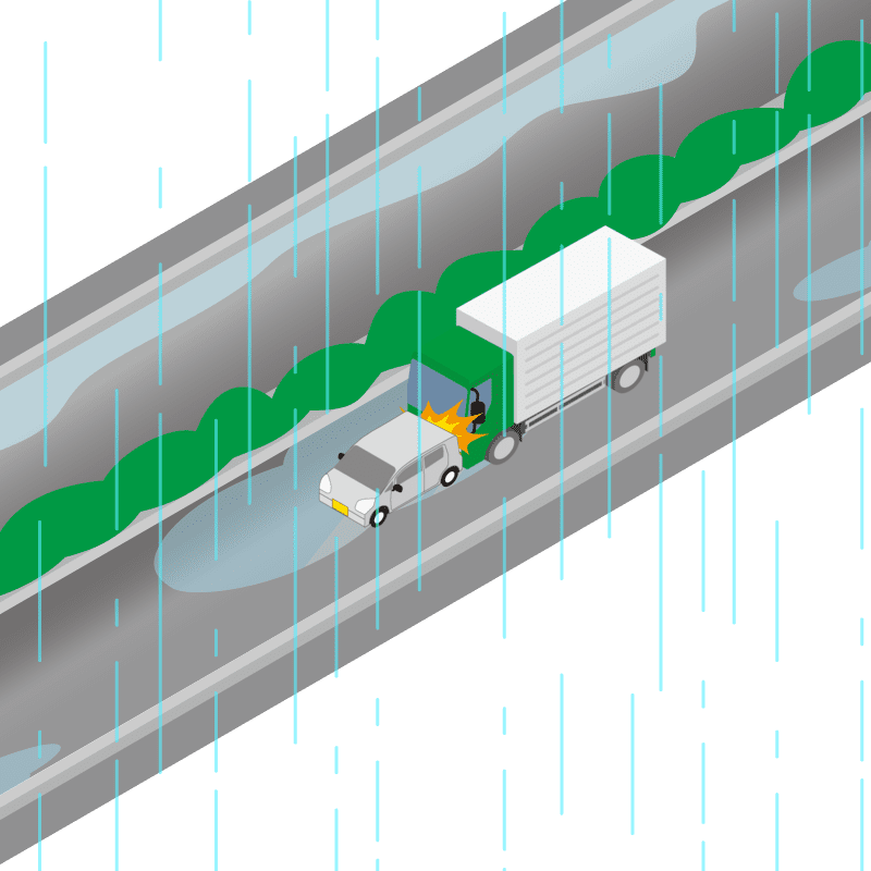 ・イラストに使用している各要素(車、背景、車、天候、信号、衝突地点など)は、代表的なイメージをイラスト化しており、色や形状等含め現実の事故の状況とは異なります。あくまで、事故のイメージとして参考までにご活用ください。