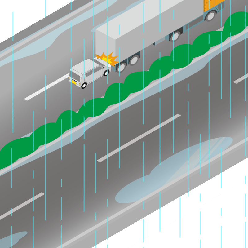 ・イラストに使用している各要素(車、背景、車、天候、信号、衝突地点など)は、代表的なイメージをイラスト化しており、色や形状等含め現実の事故の状況とは異なります。あくまで、事故のイメージとして参考までにご活用ください。