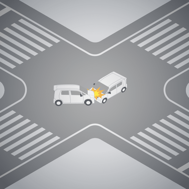 ・イラストに使用している各要素(車、背景、車、天候、信号、衝突地点など)は、代表的なイメージをイラスト化しており、色や形状等含め現実の事故の状況とは異なります。あくまで、事故のイメージとして参考までにご活用ください。