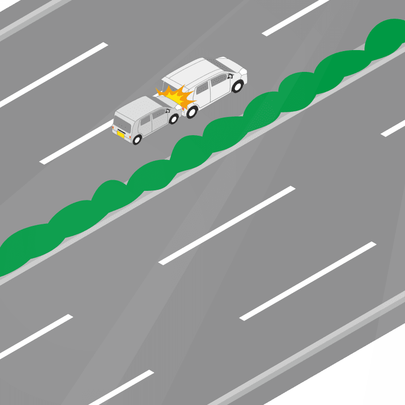 ・イラストに使用している各要素(車、背景、車、天候、信号、衝突地点など)は、代表的なイメージをイラスト化しており、色や形状等含め現実の事故の状況とは異なります。あくまで、事故のイメージとして参考までにご活用ください。