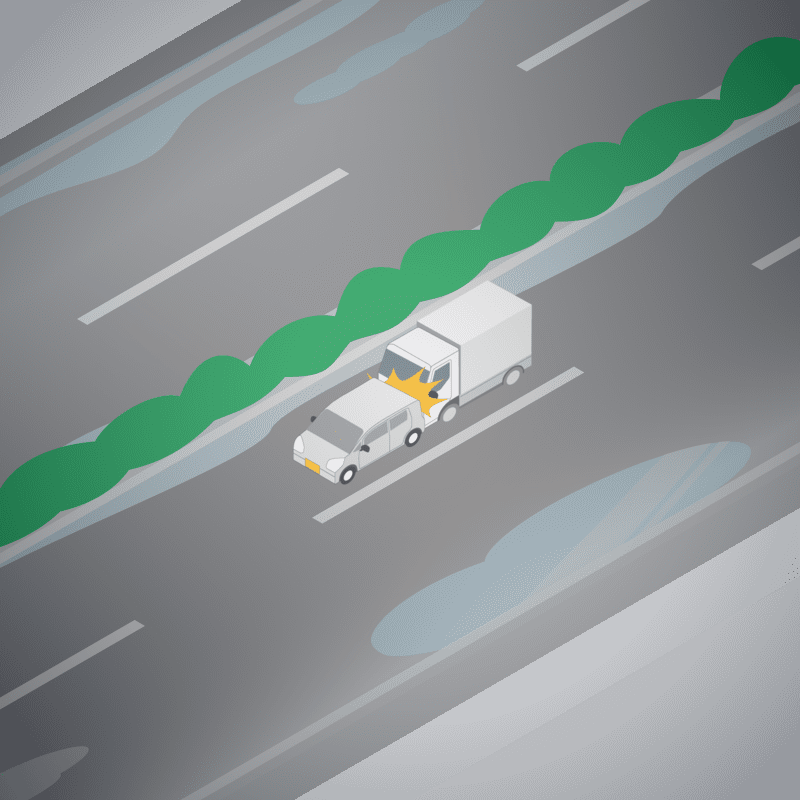 ・イラストに使用している各要素(車、背景、車、天候、信号、衝突地点など)は、代表的なイメージをイラスト化しており、色や形状等含め現実の事故の状況とは異なります。あくまで、事故のイメージとして参考までにご活用ください。