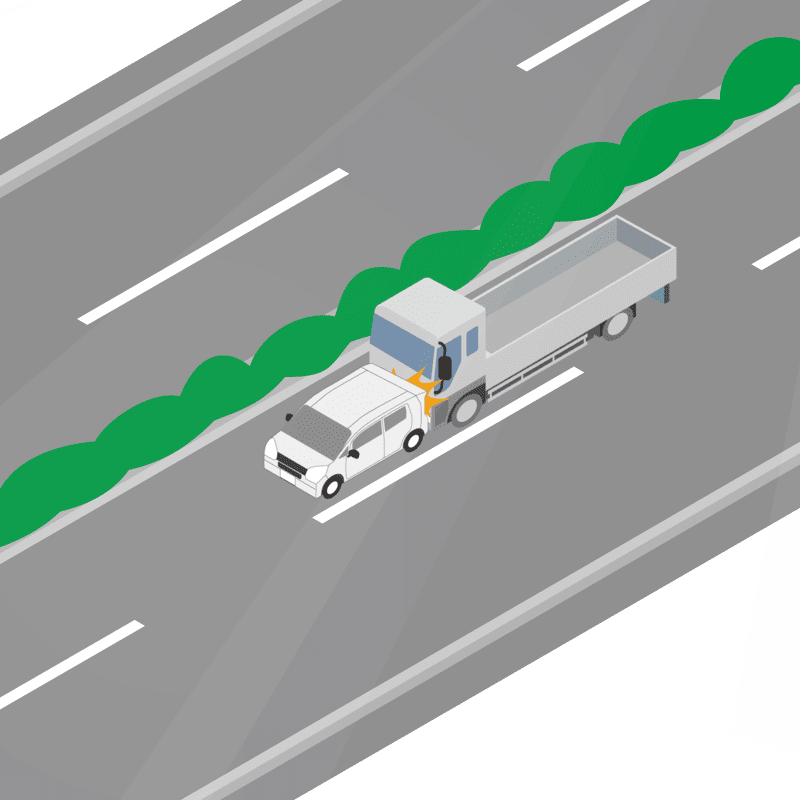 ・イラストに使用している各要素(車、背景、車、天候、信号、衝突地点など)は、代表的なイメージをイラスト化しており、色や形状等含め現実の事故の状況とは異なります。あくまで、事故のイメージとして参考までにご活用ください。