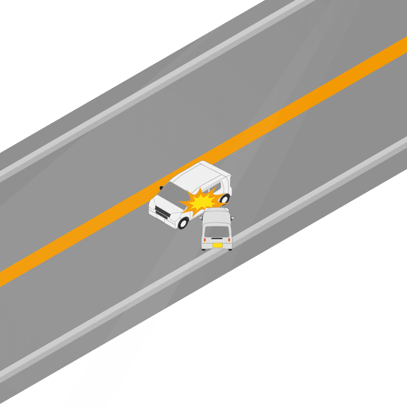 ・イラストに使用している各要素(車、背景、車、天候、信号、衝突地点など)は、代表的なイメージをイラスト化しており、色や形状等含め現実の事故の状況とは異なります。あくまで、事故のイメージとして参考までにご活用ください。