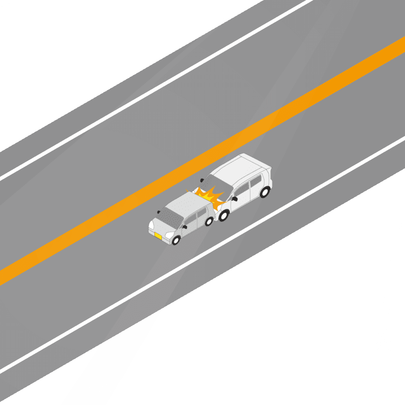 ・イラストに使用している各要素(車、背景、車、天候、信号、衝突地点など)は、代表的なイメージをイラスト化しており、色や形状等含め現実の事故の状況とは異なります。あくまで、事故のイメージとして参考までにご活用ください。