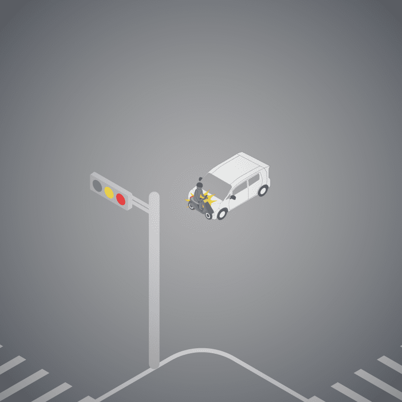 ・イラストに使用している各要素(車、背景、車、天候、信号、衝突地点など)は、代表的なイメージをイラスト化しており、色や形状等含め現実の事故の状況とは異なります。あくまで、事故のイメージとして参考までにご活用ください。