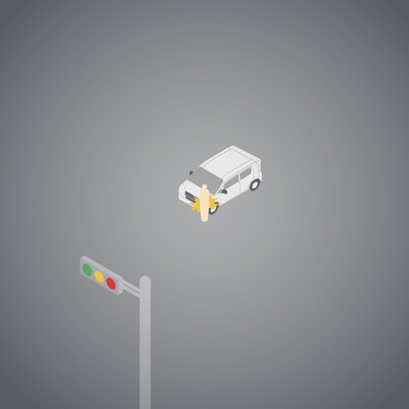 ・イラストに使用している各要素(車、背景、車、天候、信号、衝突地点など)は、代表的なイメージをイラスト化しており、色や形状等含め現実の事故の状況とは異なります。あくまで、事故のイメージとして参考までにご活用ください。