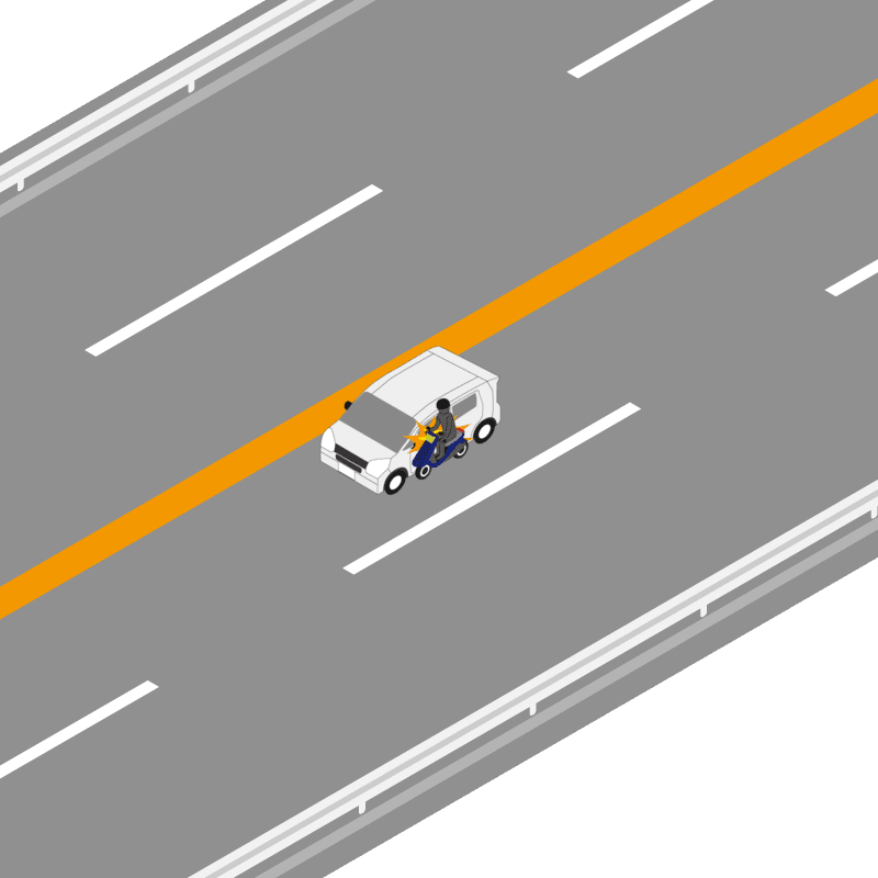 ・イラストに使用している各要素(車、背景、車、天候、信号、衝突地点など)は、代表的なイメージをイラスト化しており、色や形状等含め現実の事故の状況とは異なります。あくまで、事故のイメージとして参考までにご活用ください。