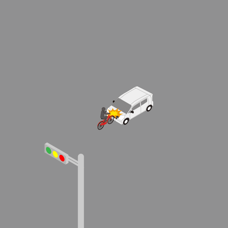・イラストに使用している各要素(車、背景、車、天候、信号、衝突地点など)は、代表的なイメージをイラスト化しており、色や形状等含め現実の事故の状況とは異なります。あくまで、事故のイメージとして参考までにご活用ください。