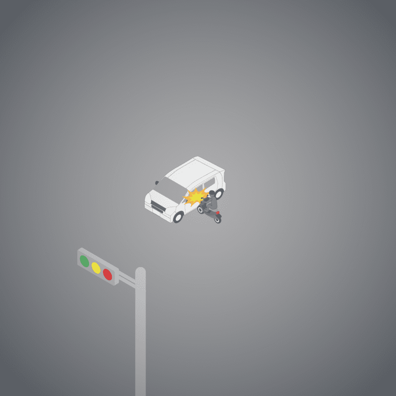 ・イラストに使用している各要素(車、背景、車、天候、信号、衝突地点など)は、代表的なイメージをイラスト化しており、色や形状等含め現実の事故の状況とは異なります。あくまで、事故のイメージとして参考までにご活用ください。
