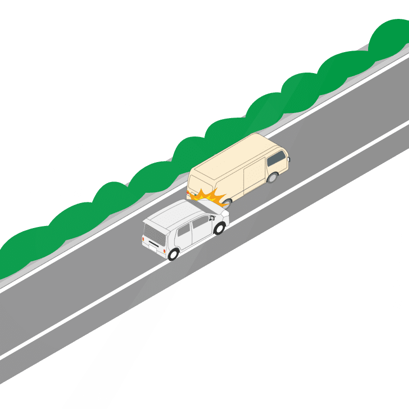 ・イラストに使用している各要素(車、背景、車、天候、信号、衝突地点など)は、代表的なイメージをイラスト化しており、色や形状等含め現実の事故の状況とは異なります。あくまで、事故のイメージとして参考までにご活用ください。