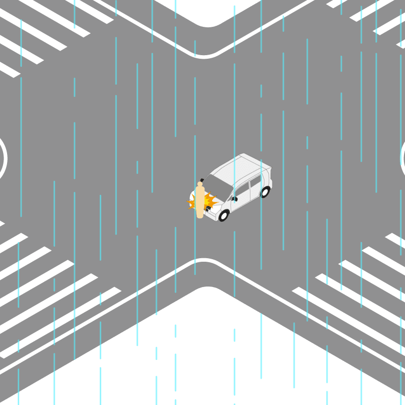 ・イラストに使用している各要素(車、背景、車、天候、信号、衝突地点など)は、代表的なイメージをイラスト化しており、色や形状等含め現実の事故の状況とは異なります。あくまで、事故のイメージとして参考までにご活用ください。