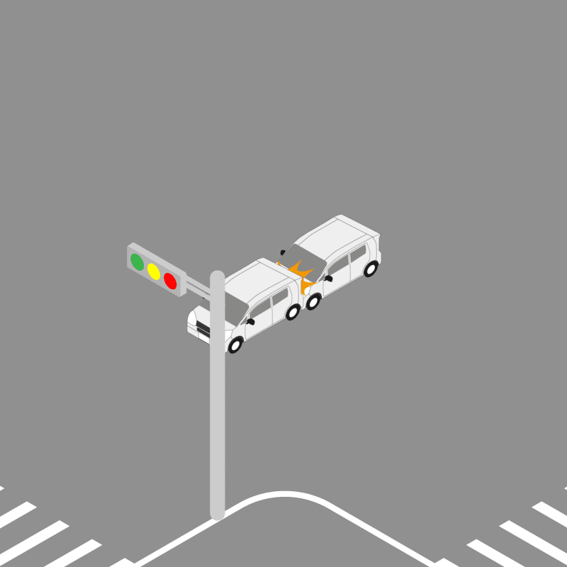 ・イラストに使用している各要素(車、背景、車、天候、信号、衝突地点など)は、代表的なイメージをイラスト化しており、色や形状等含め現実の事故の状況とは異なります。あくまで、事故のイメージとして参考までにご活用ください。
