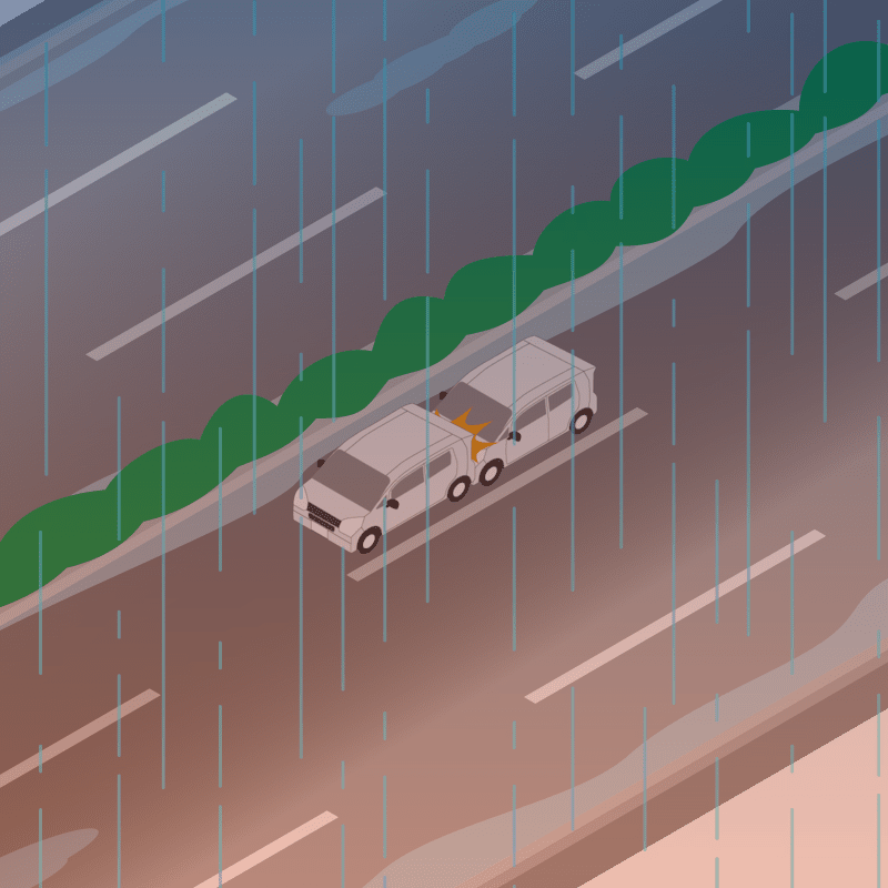・イラストに使用している各要素(車、背景、車、天候、信号、衝突地点など)は、代表的なイメージをイラスト化しており、色や形状等含め現実の事故の状況とは異なります。あくまで、事故のイメージとして参考までにご活用ください。