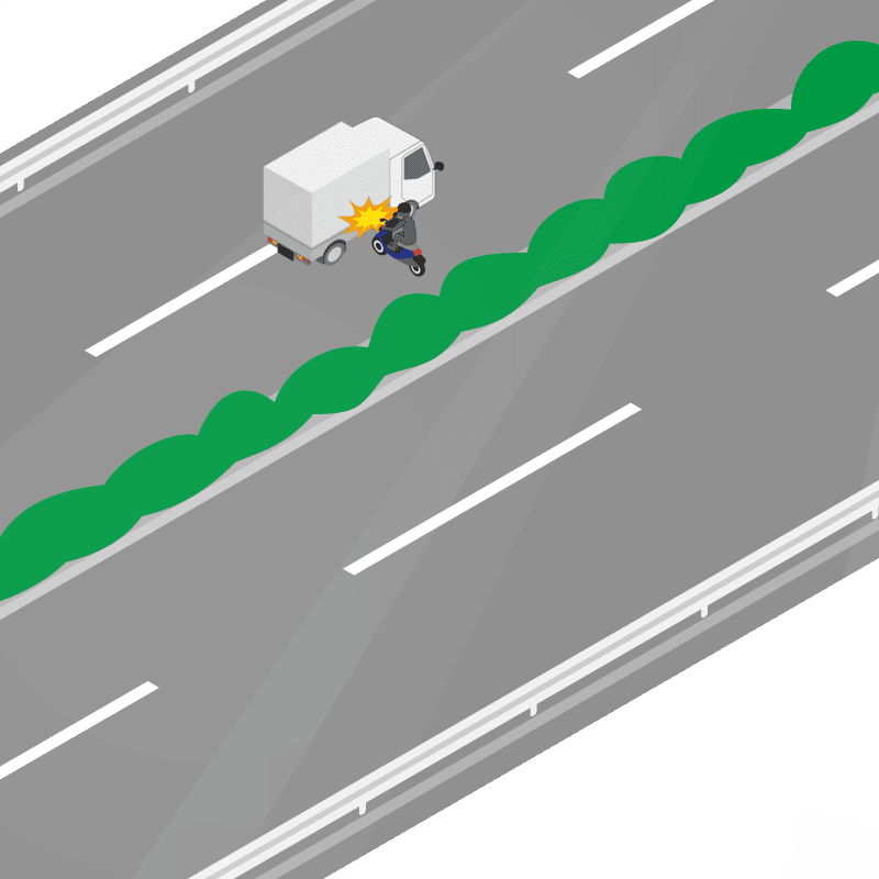・イラストに使用している各要素(車、背景、車、天候、信号、衝突地点など)は、代表的なイメージをイラスト化しており、色や形状等含め現実の事故の状況とは異なります。あくまで、事故のイメージとして参考までにご活用ください。