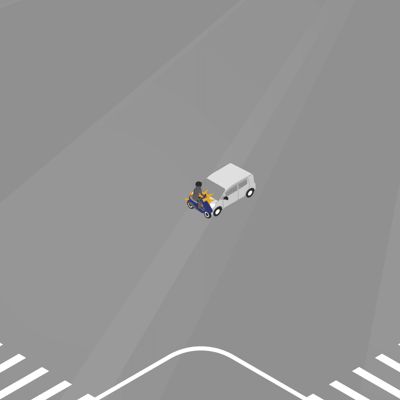 ・イラストに使用している各要素(車、背景、車、天候、信号、衝突地点など)は、代表的なイメージをイラスト化しており、色や形状等含め現実の事故の状況とは異なります。あくまで、事故のイメージとして参考までにご活用ください。