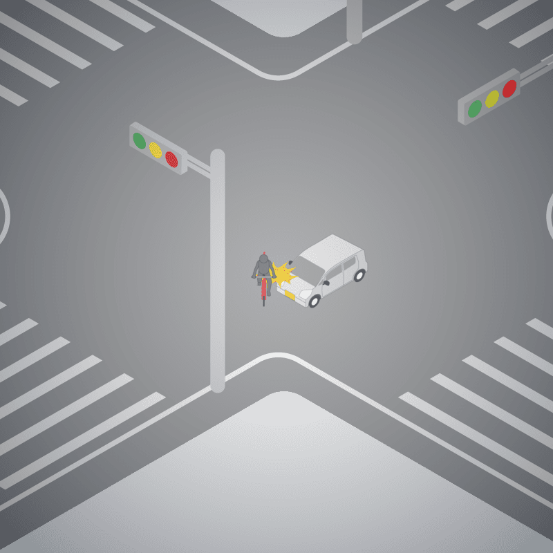 ・イラストに使用している各要素(車、背景、車、天候、信号、衝突地点など)は、代表的なイメージをイラスト化しており、色や形状等含め現実の事故の状況とは異なります。あくまで、事故のイメージとして参考までにご活用ください。