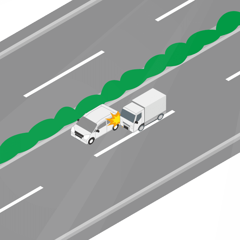 ・イラストに使用している各要素(車、背景、車、天候、信号、衝突地点など)は、代表的なイメージをイラスト化しており、色や形状等含め現実の事故の状況とは異なります。あくまで、事故のイメージとして参考までにご活用ください。