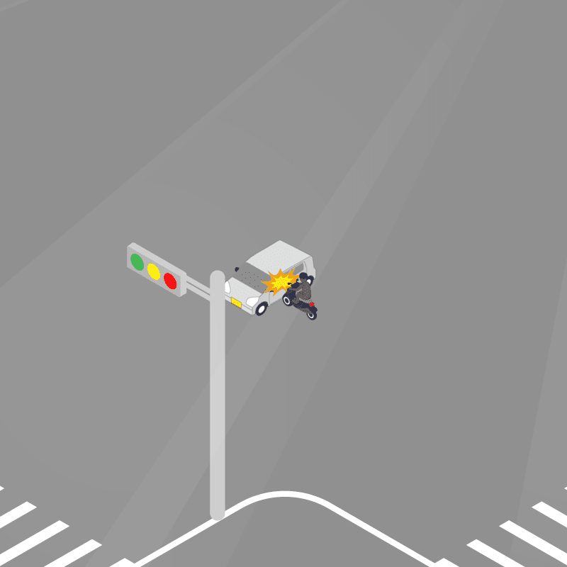 ・イラストに使用している各要素(車、背景、車、天候、信号、衝突地点など)は、代表的なイメージをイラスト化しており、色や形状等含め現実の事故の状況とは異なります。あくまで、事故のイメージとして参考までにご活用ください。