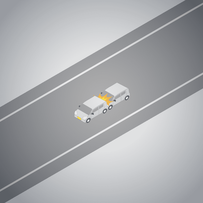 ・イラストに使用している各要素(車、背景、車、天候、信号、衝突地点など)は、代表的なイメージをイラスト化しており、色や形状等含め現実の事故の状況とは異なります。あくまで、事故のイメージとして参考までにご活用ください。