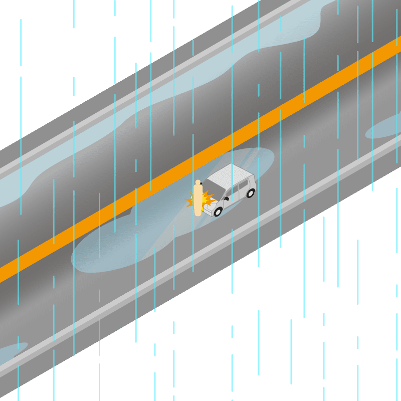 ・イラストに使用している各要素(車、背景、車、天候、信号、衝突地点など)は、代表的なイメージをイラスト化しており、色や形状等含め現実の事故の状況とは異なります。あくまで、事故のイメージとして参考までにご活用ください。