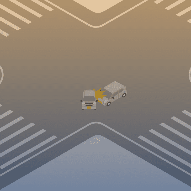 ・イラストに使用している各要素(車、背景、車、天候、信号、衝突地点など)は、代表的なイメージをイラスト化しており、色や形状等含め現実の事故の状況とは異なります。あくまで、事故のイメージとして参考までにご活用ください。