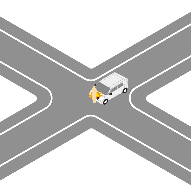 ・イラストに使用している各要素(車、背景、車、天候、信号、衝突地点など)は、代表的なイメージをイラスト化しており、色や形状等含め現実の事故の状況とは異なります。あくまで、事故のイメージとして参考までにご活用ください。