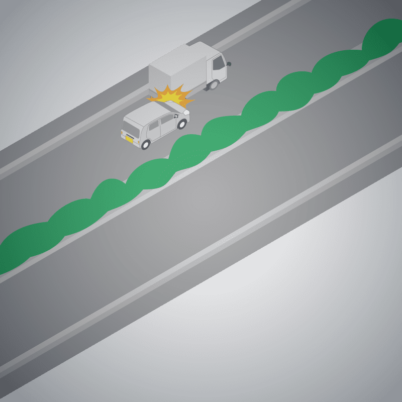 ・イラストに使用している各要素(車、背景、車、天候、信号、衝突地点など)は、代表的なイメージをイラスト化しており、色や形状等含め現実の事故の状況とは異なります。あくまで、事故のイメージとして参考までにご活用ください。