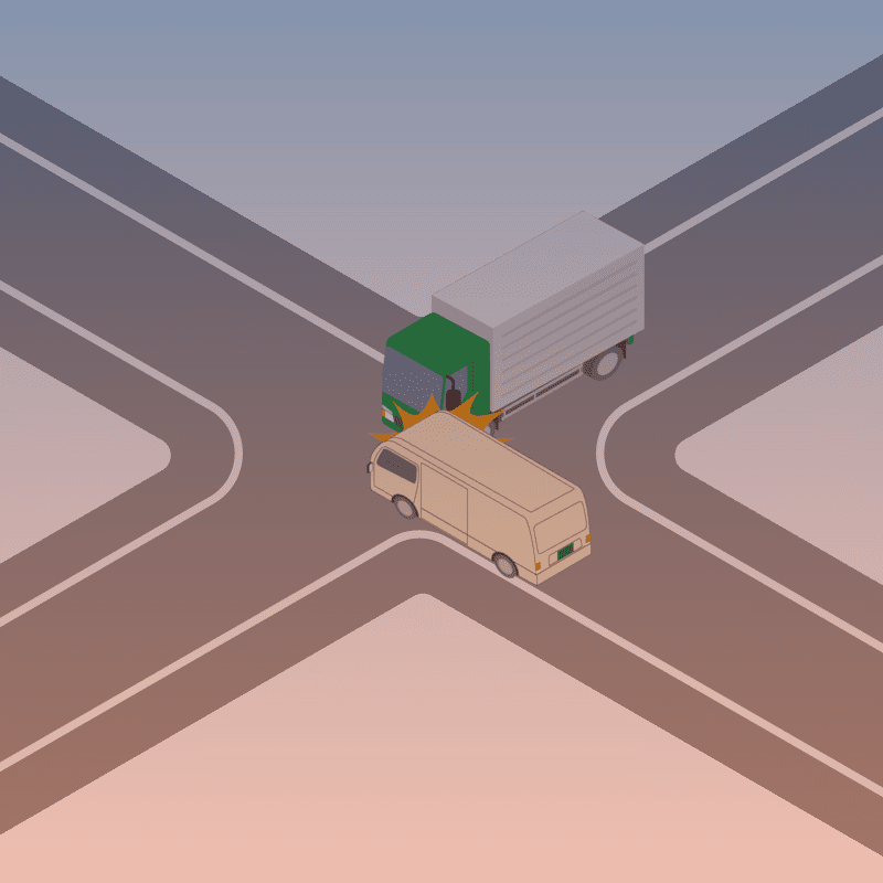 ・イラストに使用している各要素(車、背景、車、天候、信号、衝突地点など)は、代表的なイメージをイラスト化しており、色や形状等含め現実の事故の状況とは異なります。あくまで、事故のイメージとして参考までにご活用ください。