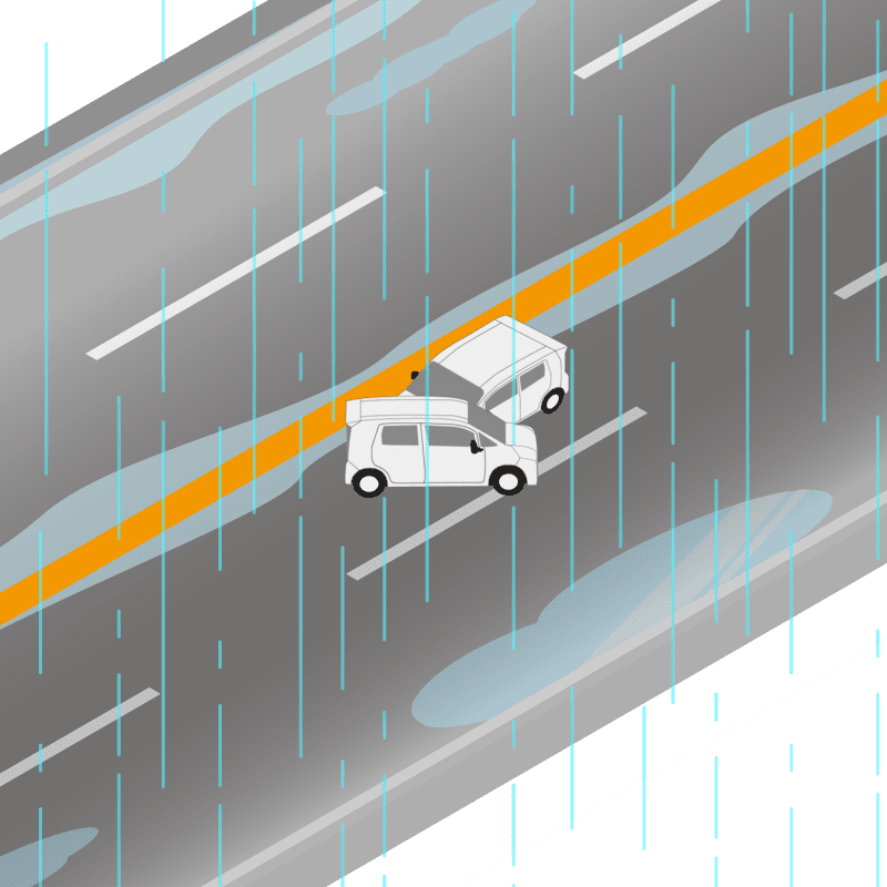 ・イラストに使用している各要素(車、背景、車、天候、信号、衝突地点など)は、代表的なイメージをイラスト化しており、色や形状等含め現実の事故の状況とは異なります。あくまで、事故のイメージとして参考までにご活用ください。
