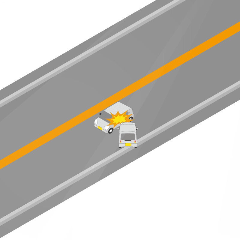 ・イラストに使用している各要素(車、背景、車、天候、信号、衝突地点など)は、代表的なイメージをイラスト化しており、色や形状等含め現実の事故の状況とは異なります。あくまで、事故のイメージとして参考までにご活用ください。