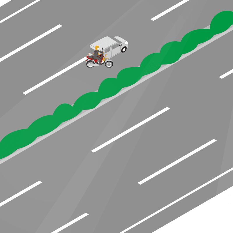 ・イラストに使用している各要素(車、背景、車、天候、信号、衝突地点など)は、代表的なイメージをイラスト化しており、色や形状等含め現実の事故の状況とは異なります。あくまで、事故のイメージとして参考までにご活用ください。
