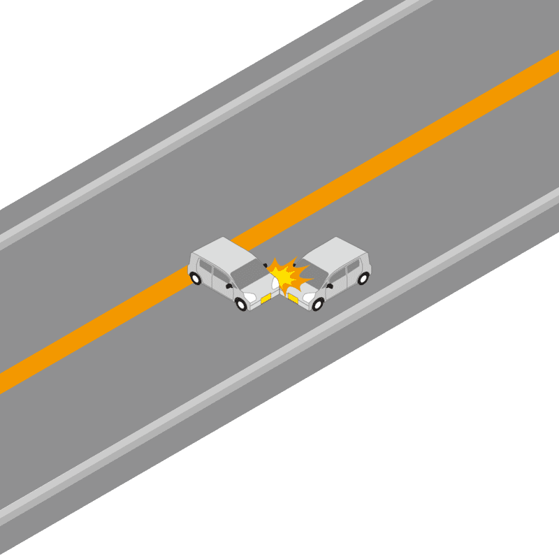 ・イラストに使用している各要素(車、背景、車、天候、信号、衝突地点など)は、代表的なイメージをイラスト化しており、色や形状等含め現実の事故の状況とは異なります。あくまで、事故のイメージとして参考までにご活用ください。