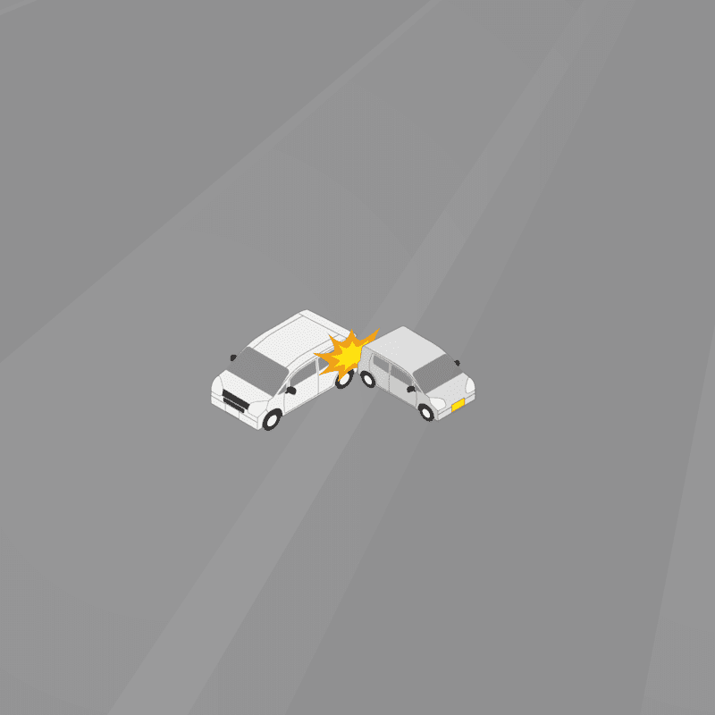 ・イラストに使用している各要素(車、背景、車、天候、信号、衝突地点など)は、代表的なイメージをイラスト化しており、色や形状等含め現実の事故の状況とは異なります。あくまで、事故のイメージとして参考までにご活用ください。