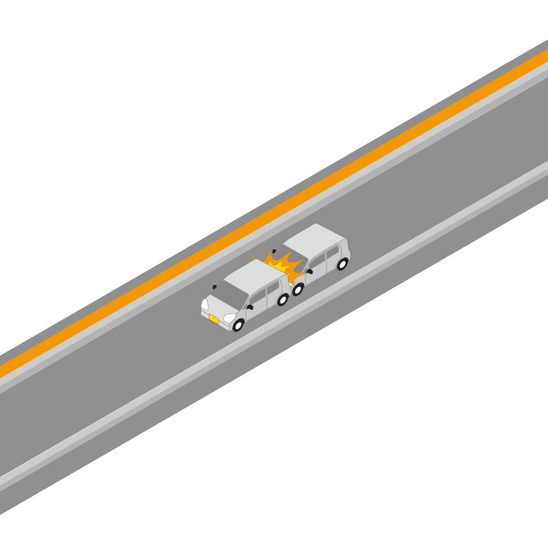 ・イラストに使用している各要素(車、背景、車、天候、信号、衝突地点など)は、代表的なイメージをイラスト化しており、色や形状等含め現実の事故の状況とは異なります。あくまで、事故のイメージとして参考までにご活用ください。