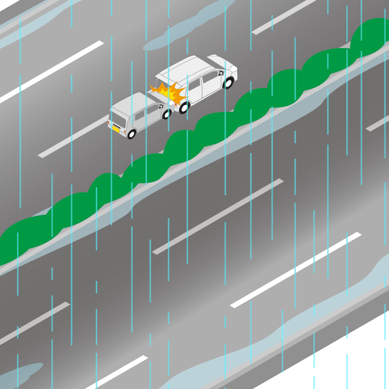 ・イラストに使用している各要素(車、背景、車、天候、信号、衝突地点など)は、代表的なイメージをイラスト化しており、色や形状等含め現実の事故の状況とは異なります。あくまで、事故のイメージとして参考までにご活用ください。