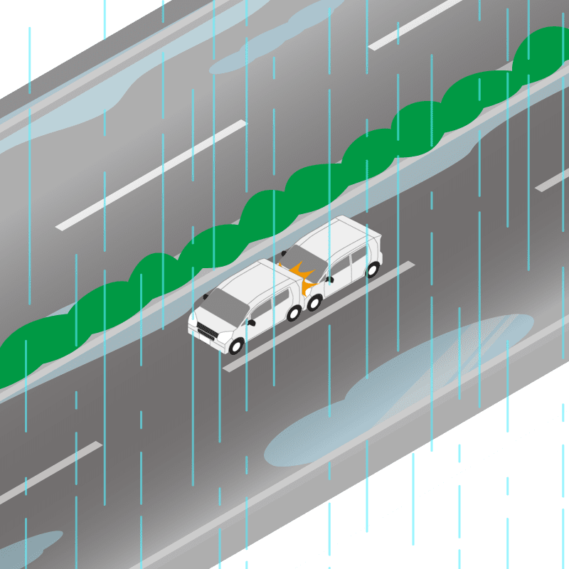 ・イラストに使用している各要素(車、背景、車、天候、信号、衝突地点など)は、代表的なイメージをイラスト化しており、色や形状等含め現実の事故の状況とは異なります。あくまで、事故のイメージとして参考までにご活用ください。
