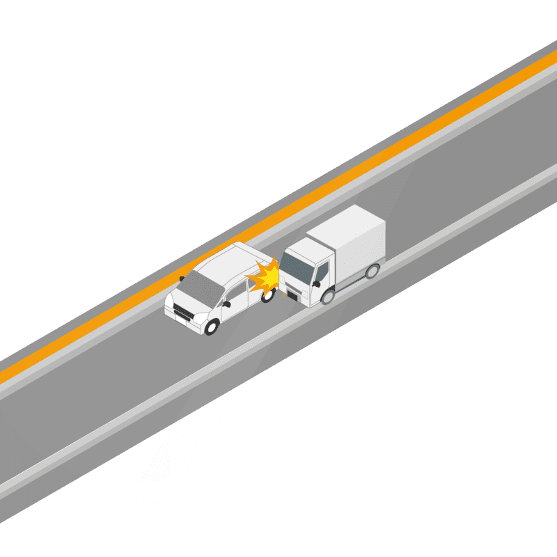 ・イラストに使用している各要素(車、背景、車、天候、信号、衝突地点など)は、代表的なイメージをイラスト化しており、色や形状等含め現実の事故の状況とは異なります。あくまで、事故のイメージとして参考までにご活用ください。