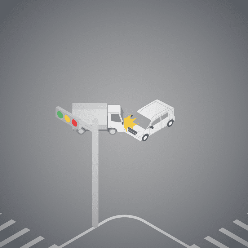 ・イラストに使用している各要素(車、背景、車、天候、信号、衝突地点など)は、代表的なイメージをイラスト化しており、色や形状等含め現実の事故の状況とは異なります。あくまで、事故のイメージとして参考までにご活用ください。