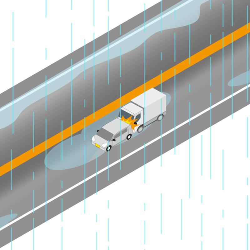 ・イラストに使用している各要素(車、背景、車、天候、信号、衝突地点など)は、代表的なイメージをイラスト化しており、色や形状等含め現実の事故の状況とは異なります。あくまで、事故のイメージとして参考までにご活用ください。