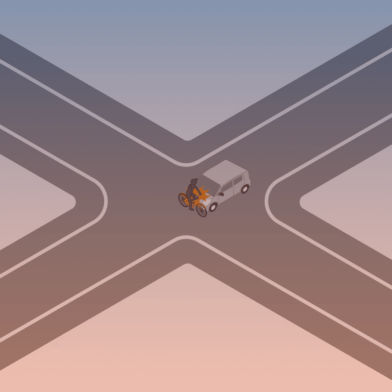 ・イラストに使用している各要素(車、背景、車、天候、信号、衝突地点など)は、代表的なイメージをイラスト化しており、色や形状等含め現実の事故の状況とは異なります。あくまで、事故のイメージとして参考までにご活用ください。