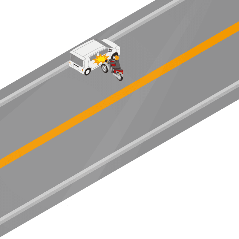 ・イラストに使用している各要素(車、背景、車、天候、信号、衝突地点など)は、代表的なイメージをイラスト化しており、色や形状等含め現実の事故の状況とは異なります。あくまで、事故のイメージとして参考までにご活用ください。