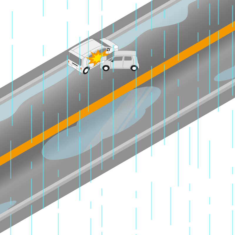 ・イラストに使用している各要素(車、背景、車、天候、信号、衝突地点など)は、代表的なイメージをイラスト化しており、色や形状等含め現実の事故の状況とは異なります。あくまで、事故のイメージとして参考までにご活用ください。