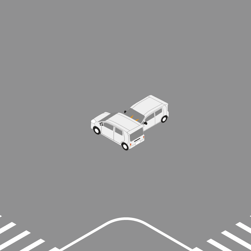 ・イラストに使用している各要素(車、背景、車、天候、信号、衝突地点など)は、代表的なイメージをイラスト化しており、色や形状等含め現実の事故の状況とは異なります。あくまで、事故のイメージとして参考までにご活用ください。