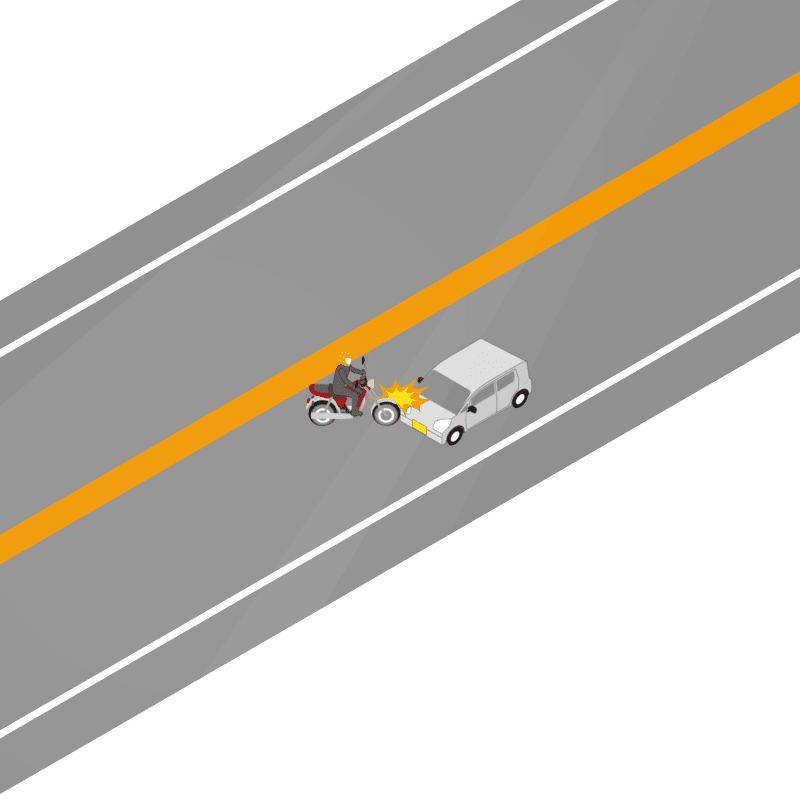 ・イラストに使用している各要素(車、背景、車、天候、信号、衝突地点など)は、代表的なイメージをイラスト化しており、色や形状等含め現実の事故の状況とは異なります。あくまで、事故のイメージとして参考までにご活用ください。