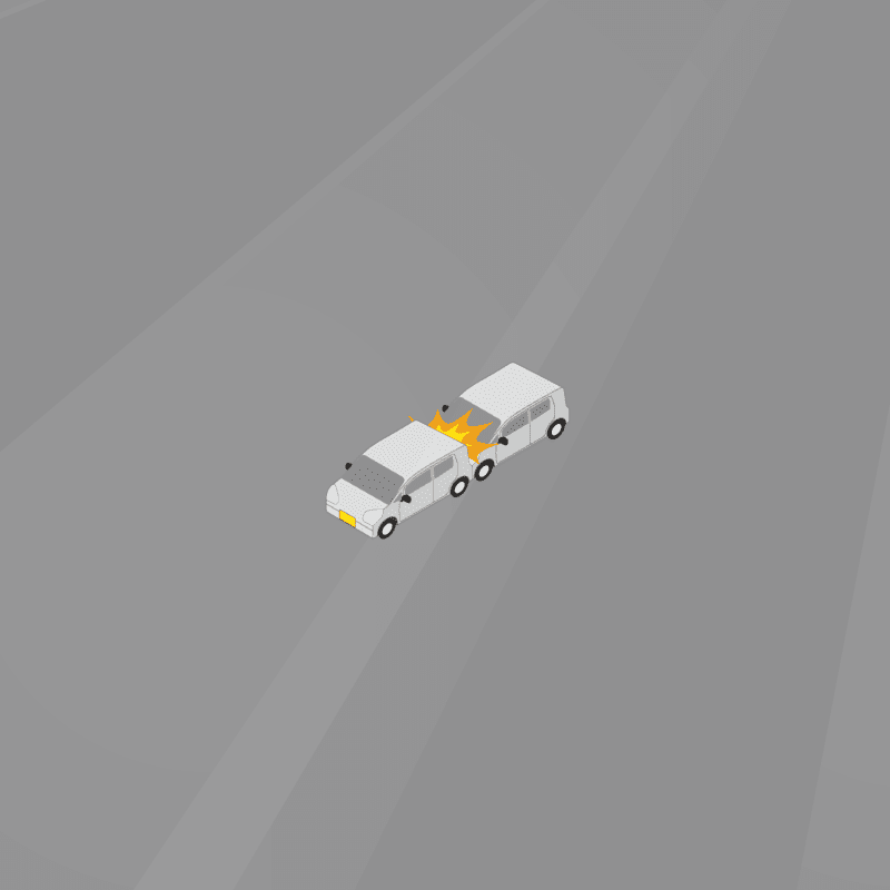 ・イラストに使用している各要素(車、背景、車、天候、信号、衝突地点など)は、代表的なイメージをイラスト化しており、色や形状等含め現実の事故の状況とは異なります。あくまで、事故のイメージとして参考までにご活用ください。